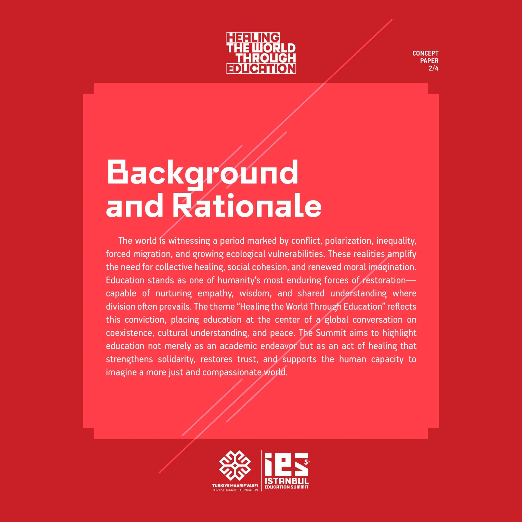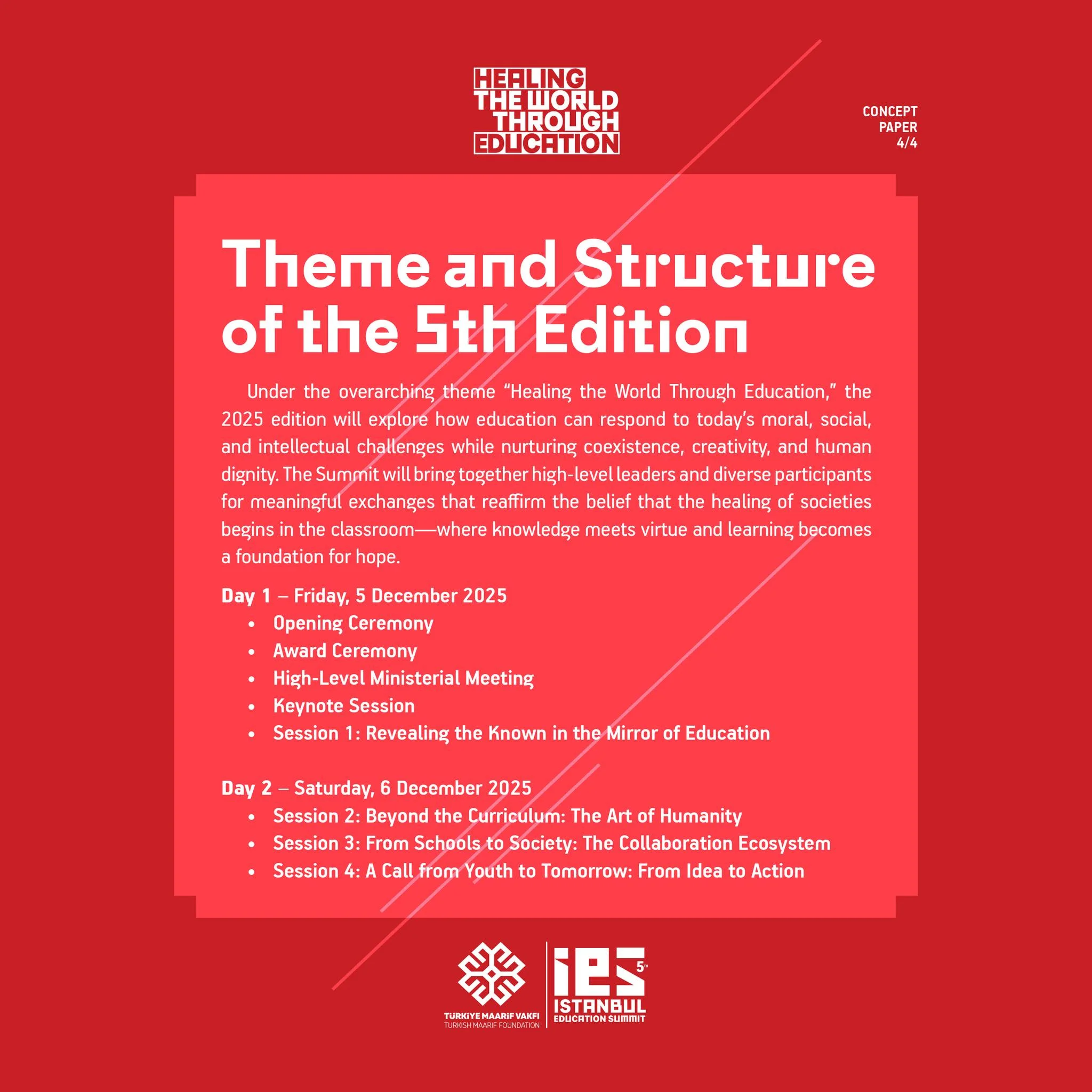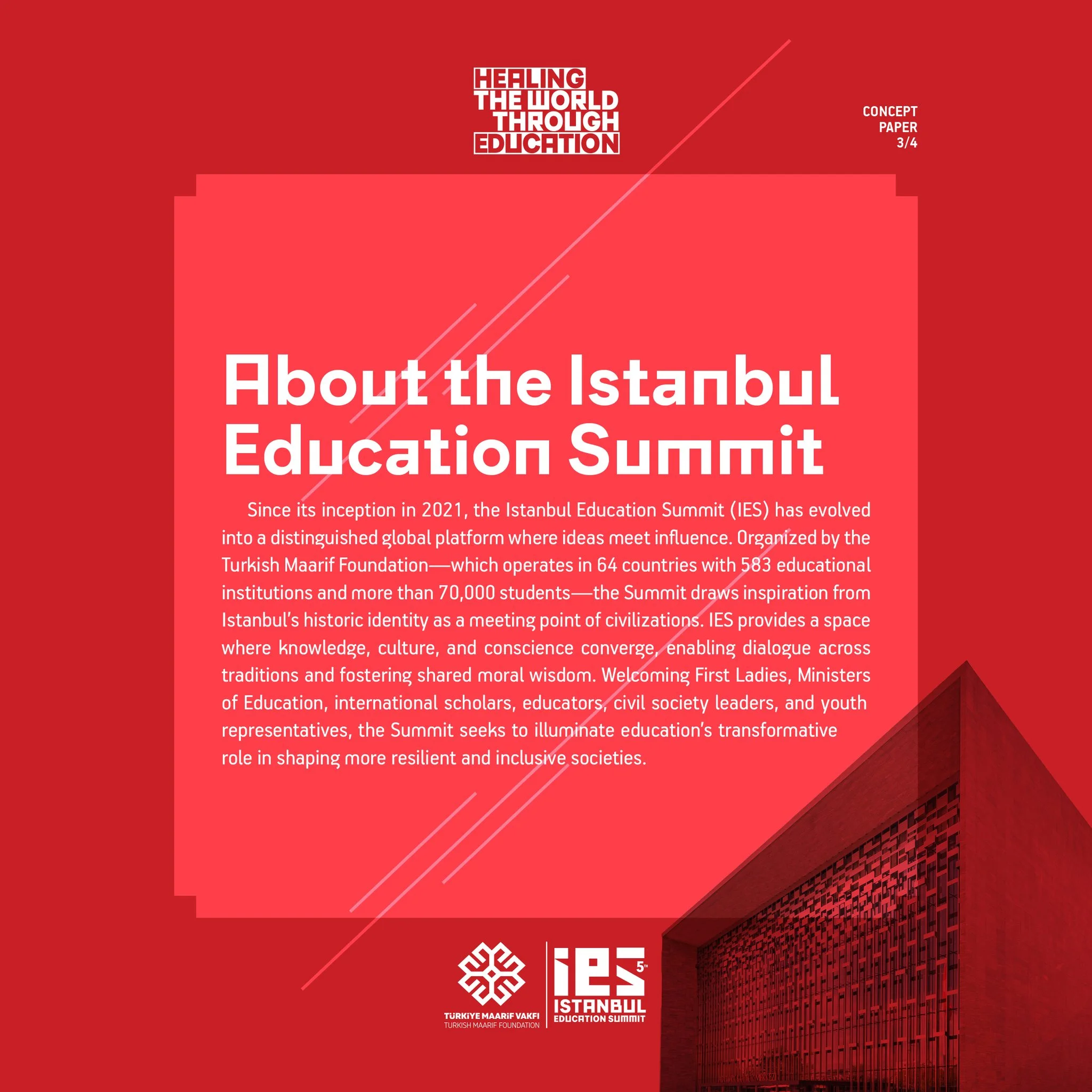 The Istanbul Education Summit (IES) will be held on December 5–6, 2025, under the theme "Healing the World through Education."