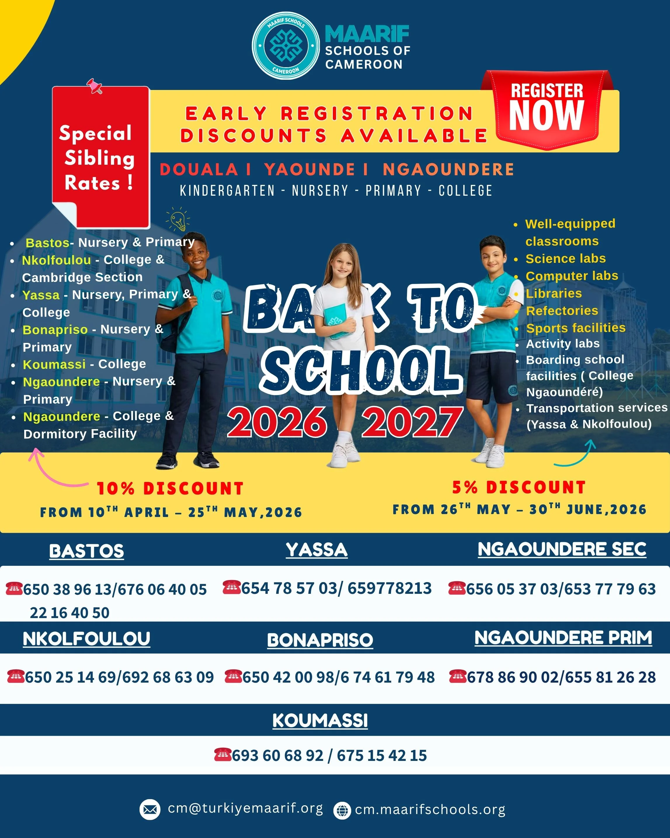 Hello! Back to School 2026/2027 🎓 — Now across all our campuses nationwide, register today and benefit from early registration discounts, special sibling rates, and other offers, including a 10% discount from 10th April to 25th May 2026 and a 5% discount from 26th May to 30th June 2026. Visit cm.maarifschools.org or contact us at cm@turkiyemaarif.org.