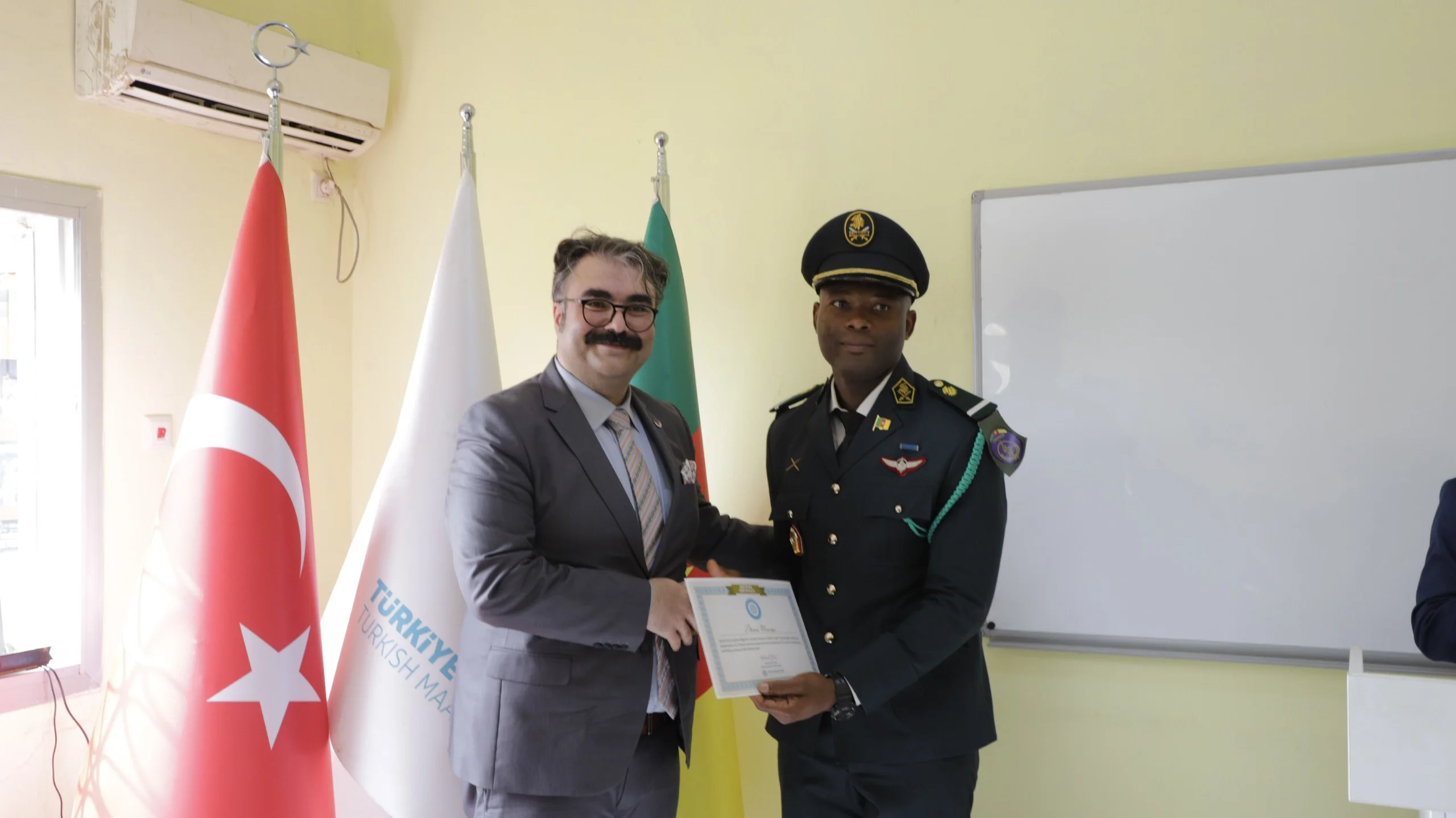 At the ceremony, held with the participation of H.E. Volkan Öskiper, Ambassador of the Republic of Türkiye to Yaoundé, our Military Attaché Colonel Fırat Kaplan, and the Commander of the Land Forces, Major General Saly Mohammadou, 13 of our students experienced the joy of graduation.